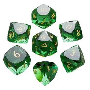 Set di dadi per prisma di pietre preziose verdi, dadi poliedrici con bordo affilato incisi per giochi DnD e RPG, Set da 7 pezzi con scatola di latta in metallo